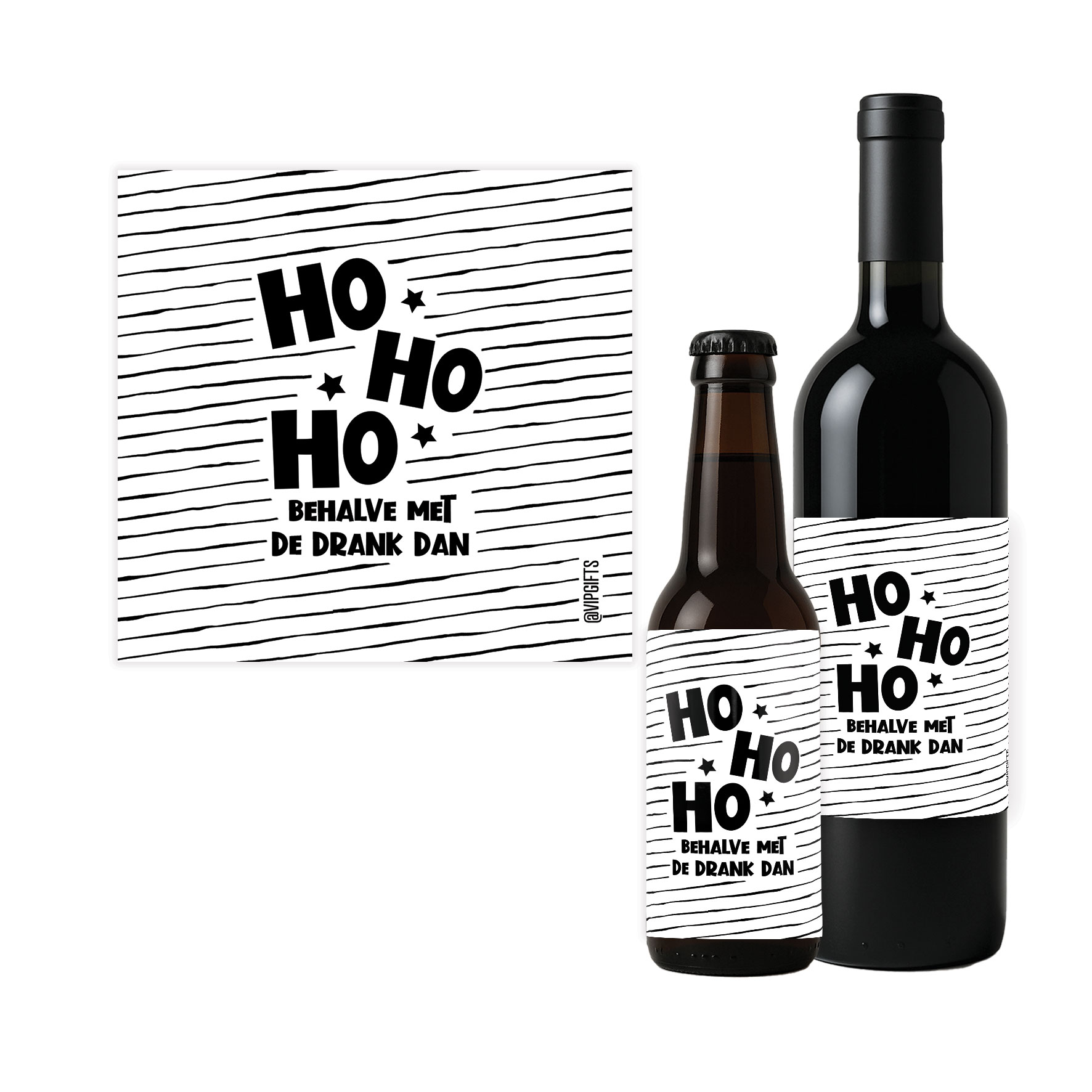 Flesetiket met de tekst: “Ho Ho Ho behalve met de wijn dan”