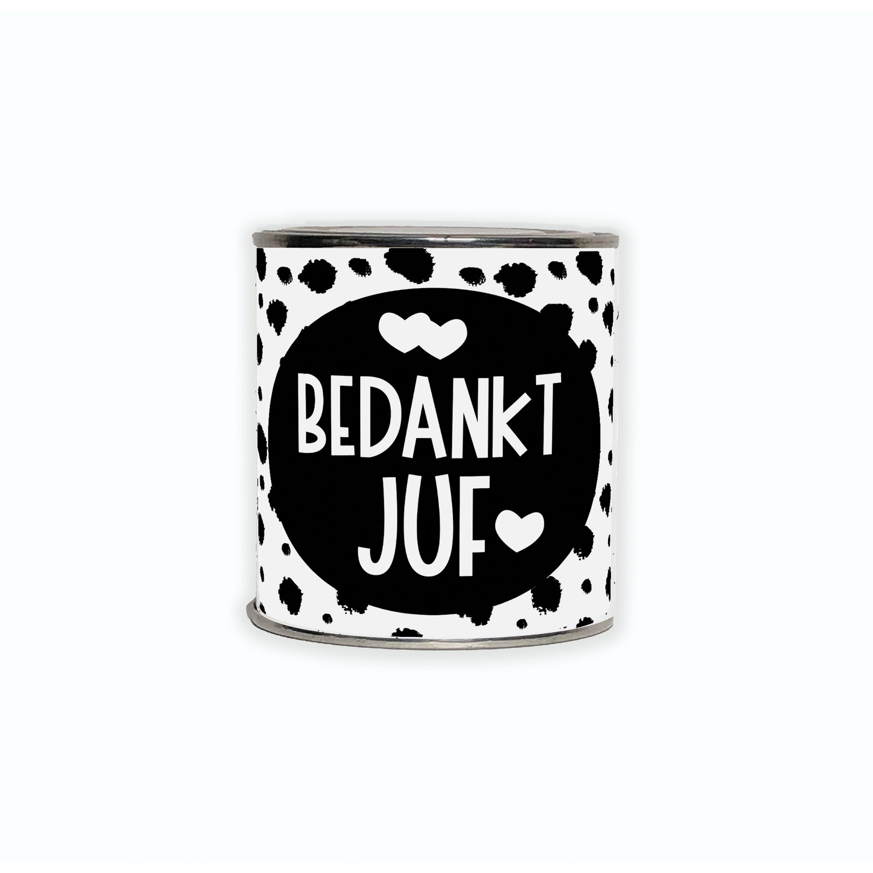 Met dit vrolijke kadoblikje bedank je de juf voor een fijne tijd.