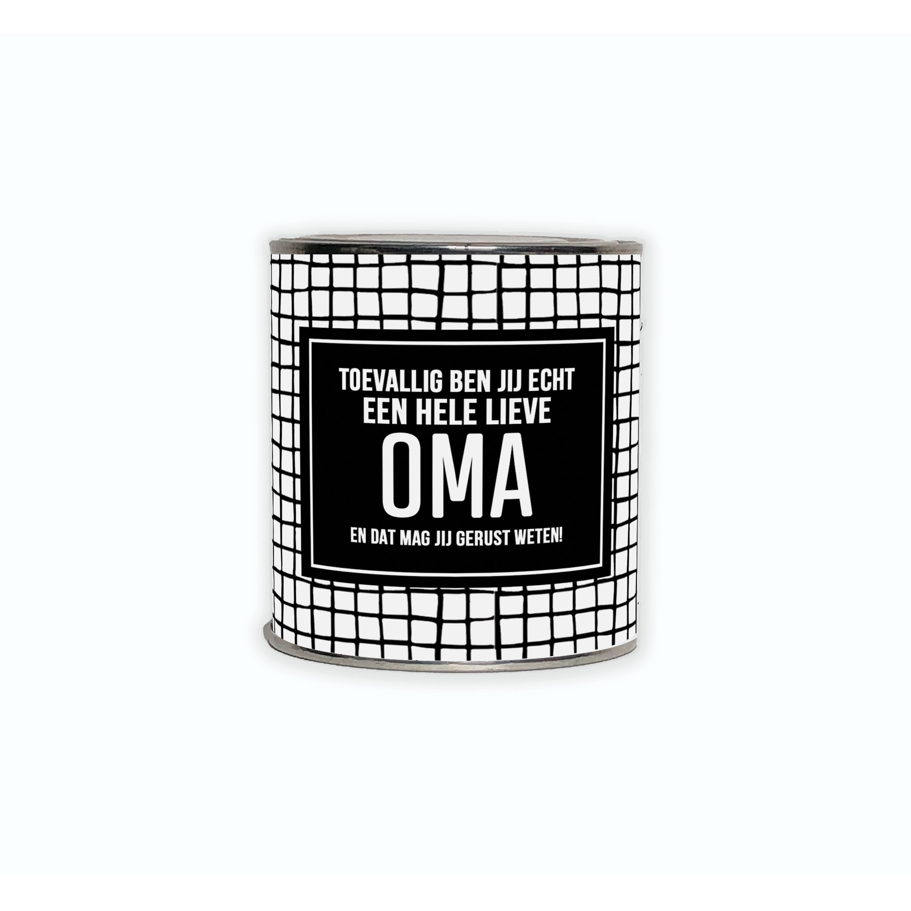Een vriendelijk kadoblikje voor oma die wel eens vaker mag horen hoe lief ze is.