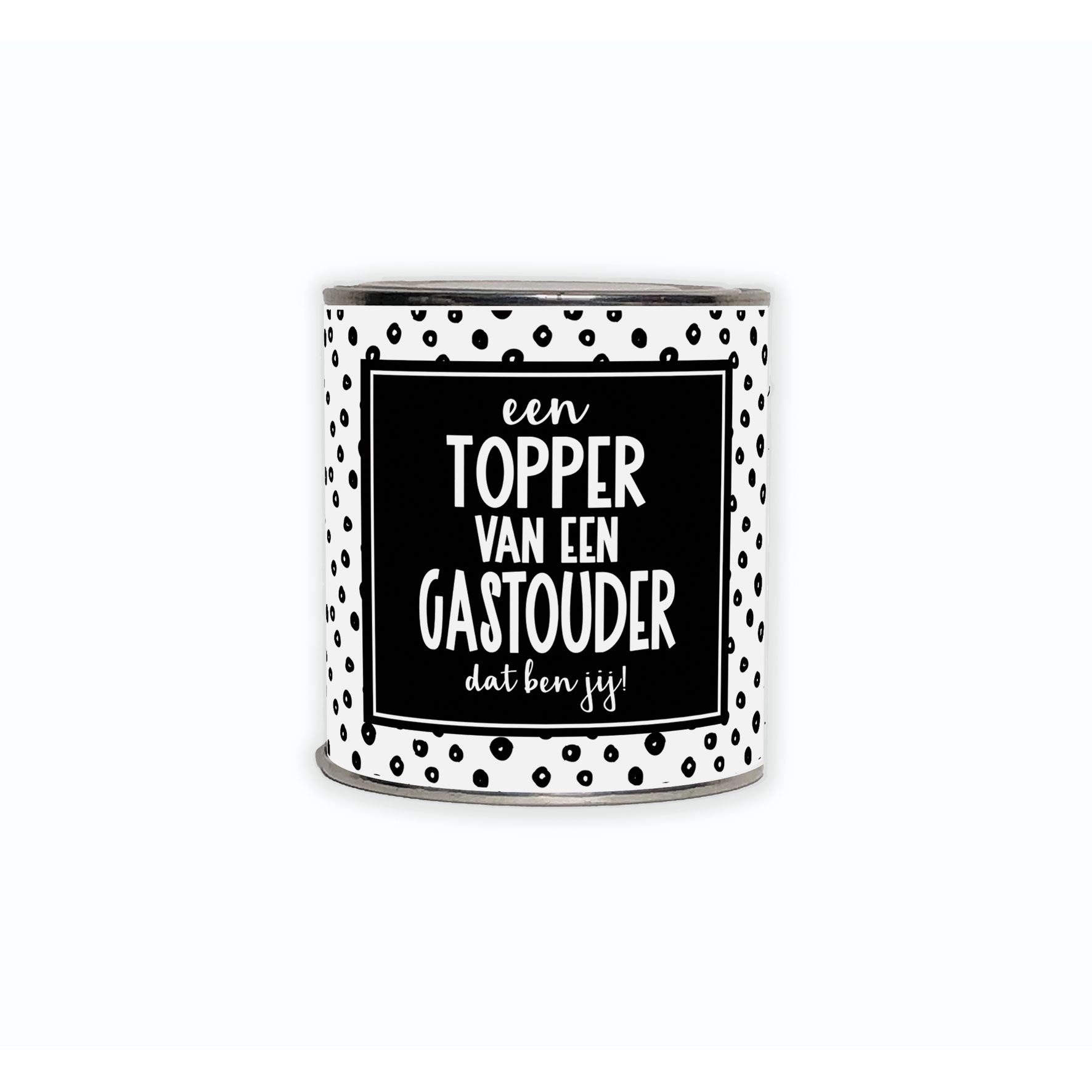Het blikje is 250 ml en ongeveer 7,7 x 7,3 cm groot