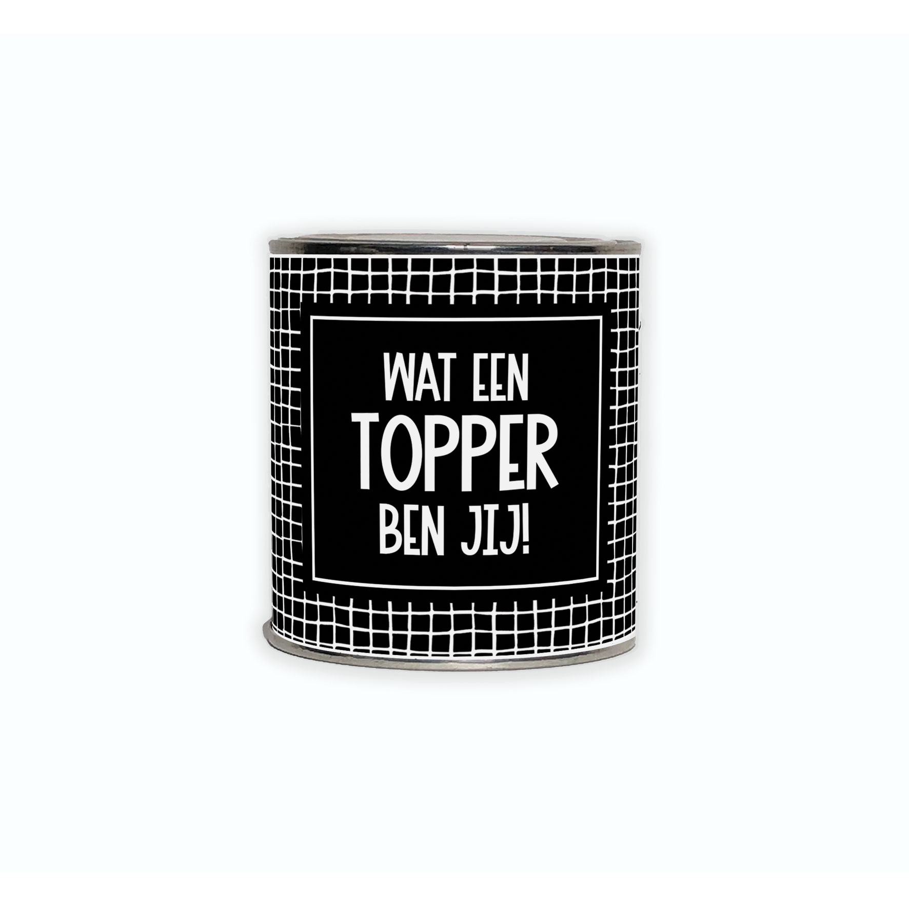 Wil je een leuk kaartje toevoegen aan het blikje? Bekijk dan onze Kaartjespagina en
