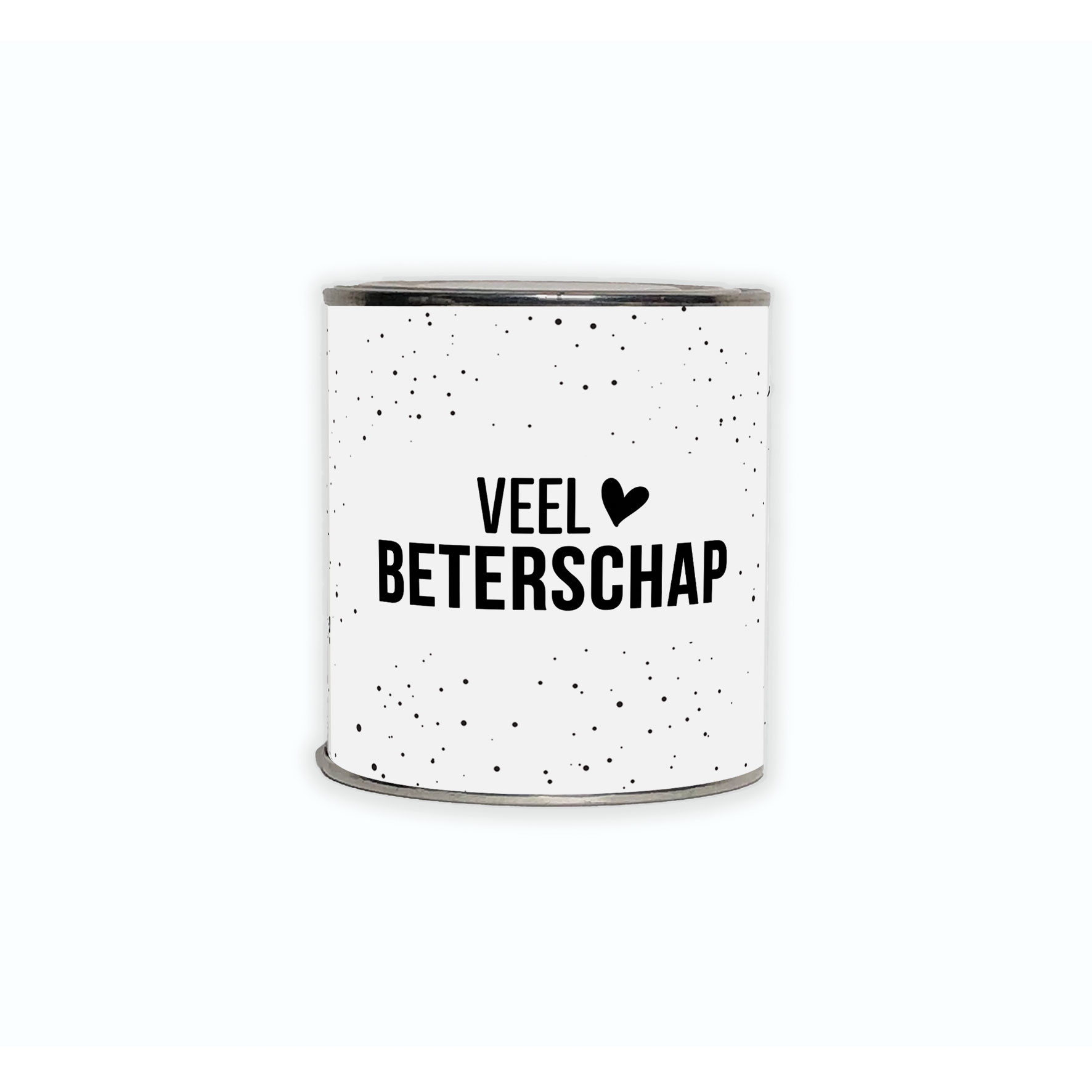 Wil je een leuk kaartje toevoegen aan het blikje? Bekijk dan onze Kaartjespagina en