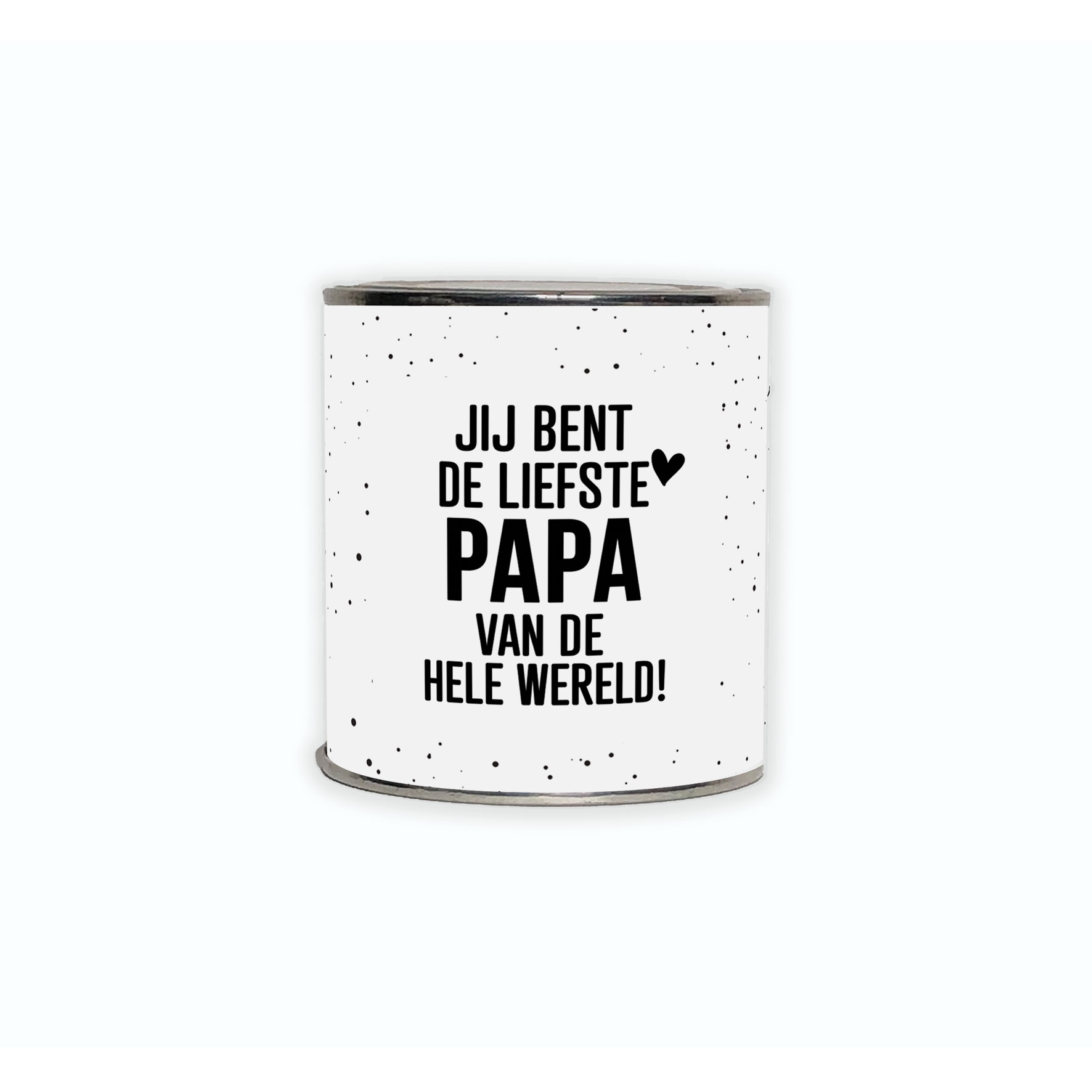 Het blikje is 250 ml en ongeveer 7,7 x 7,3 cm groot