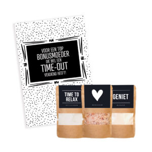 - 1x SCRUBZOUT met de tekst “Geniet”