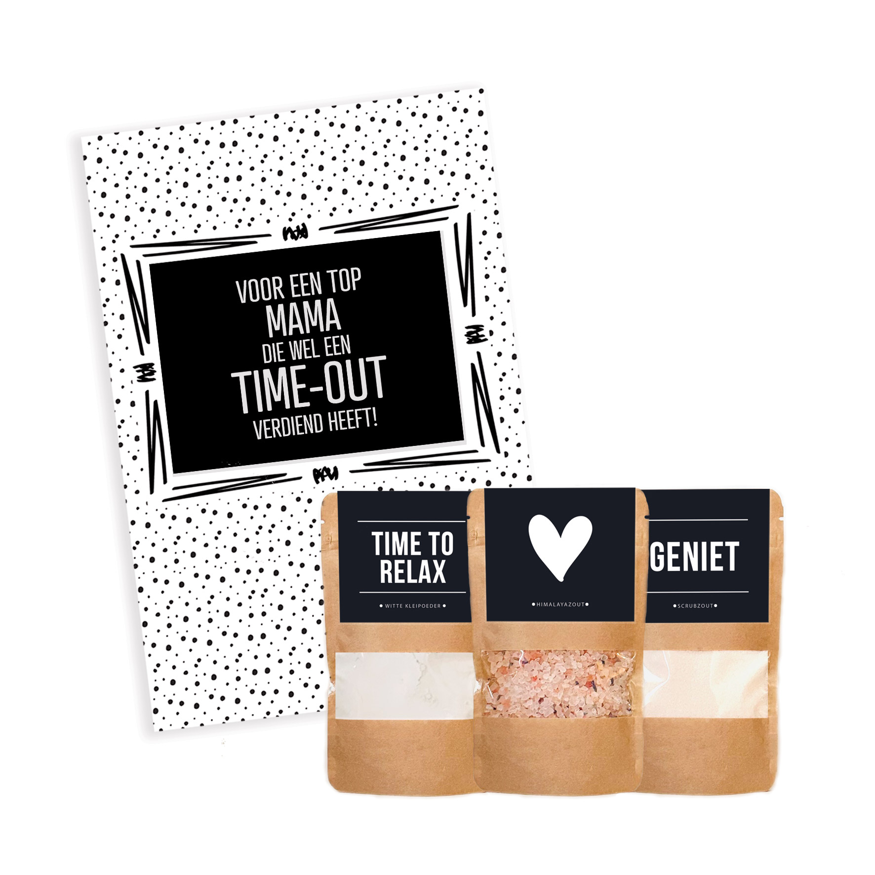 - 1x SCRUBZOUT met de tekst “Geniet”