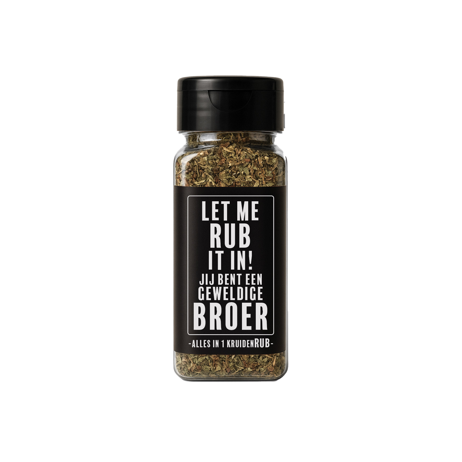 Op het label staat: “Let me RUB it in! Jij bent een geweldige broer”.