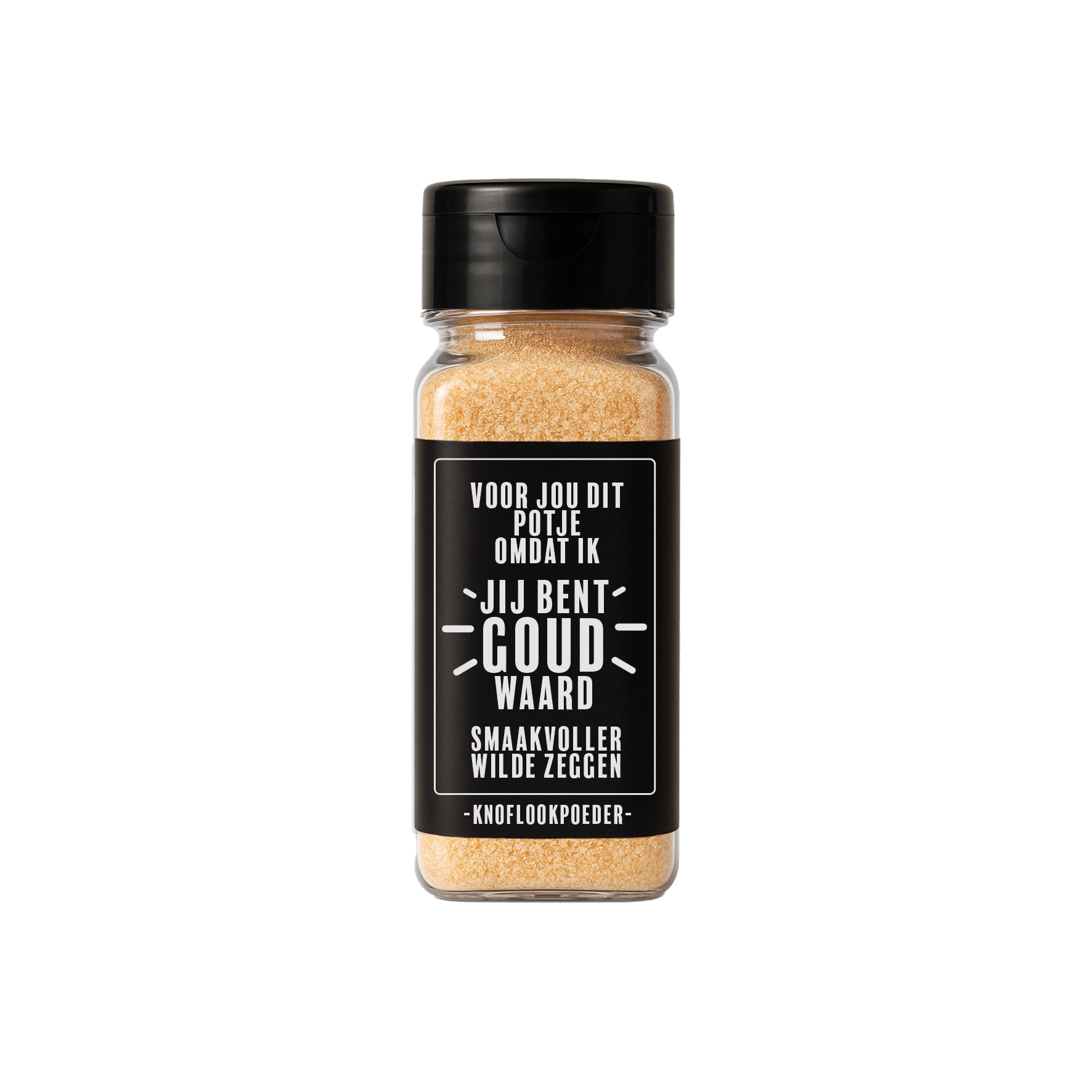 De knoflookpoeder met tekst zijn speciaal ontwikkeld door Vip Gifts.