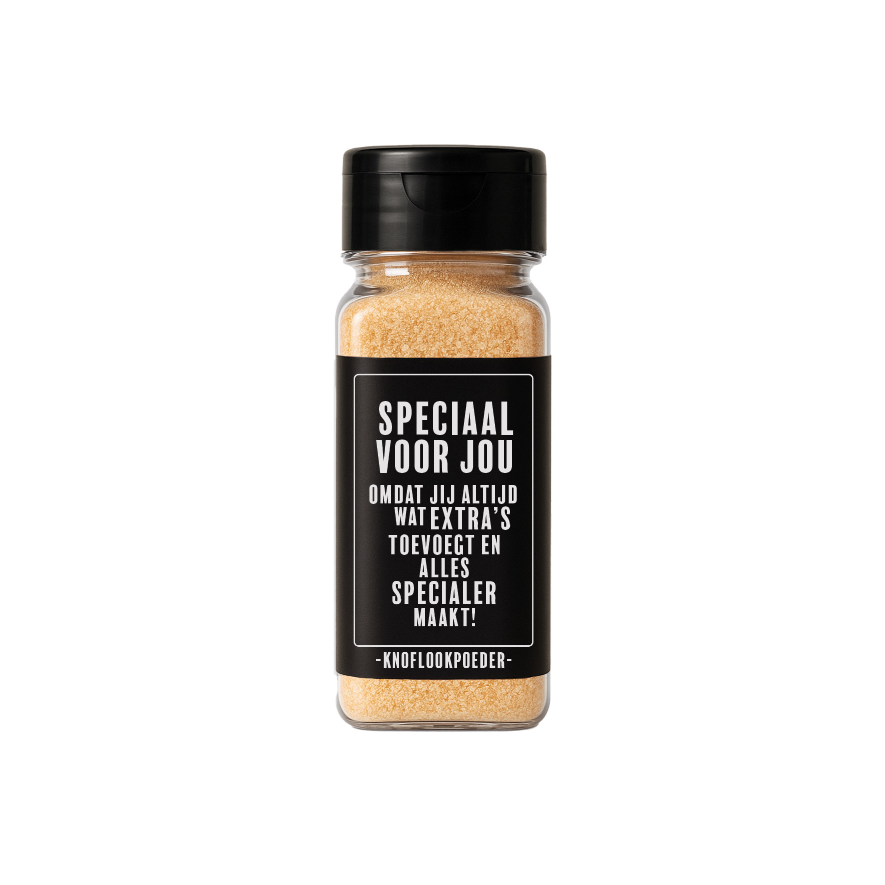 De knoflookpoeder met tekst zijn speciaal ontwikkeld door Vip Gifts.